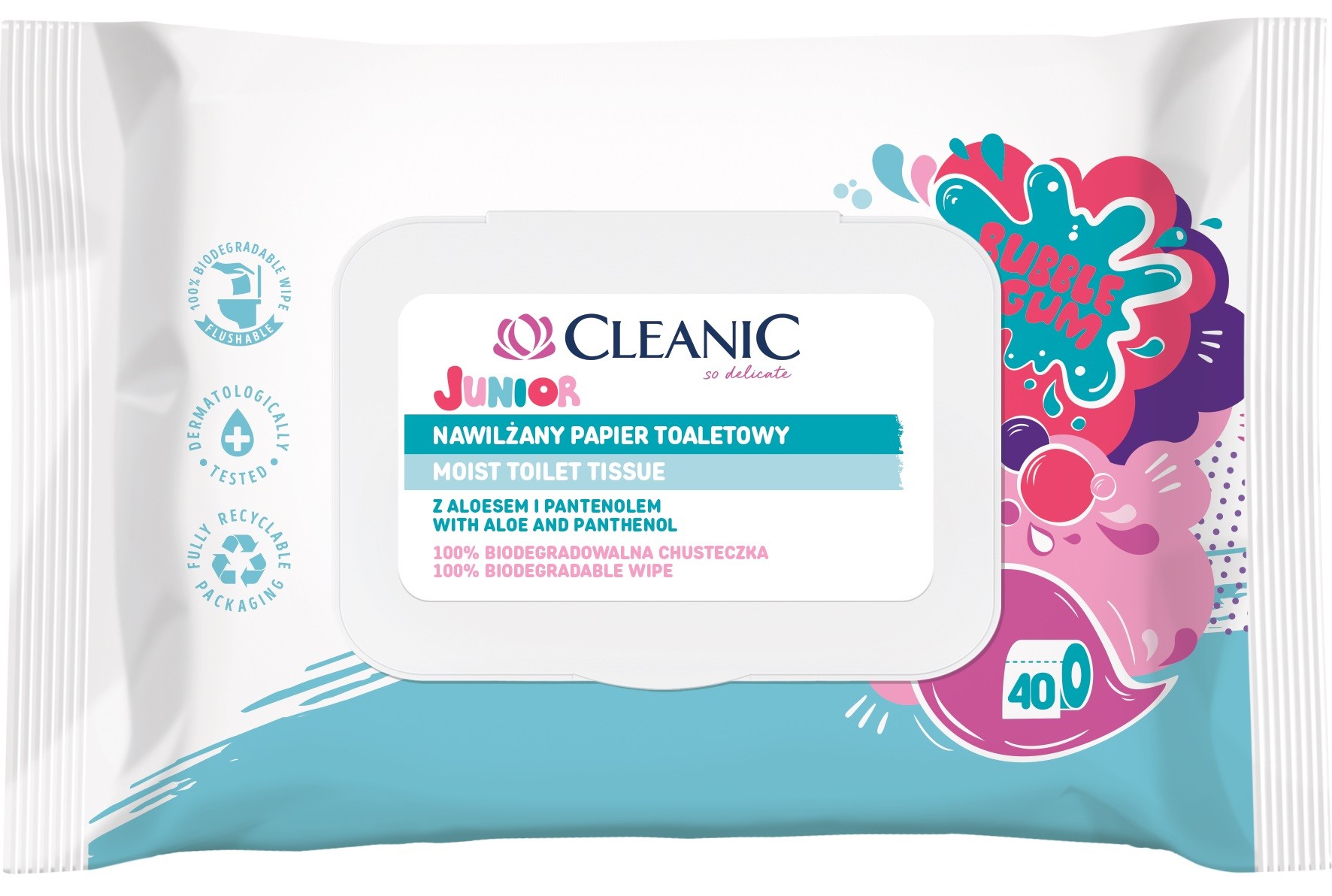 Cleanic Junior Nawilzany Papier toaletowy Bubble Gum 1op.-40szt