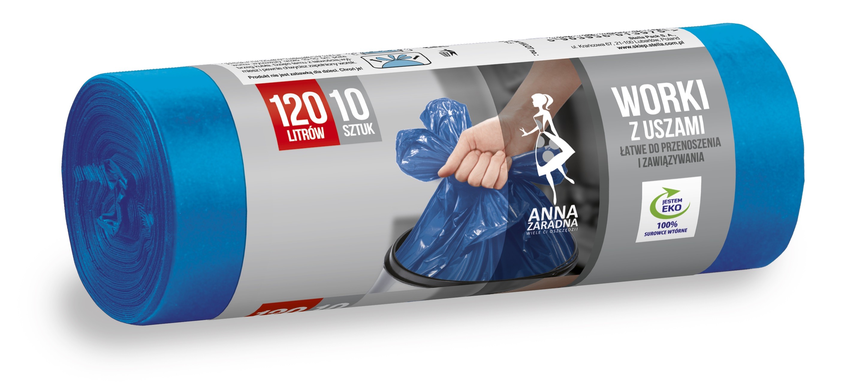 ANNA ZARADNA Worki na smieci z uszami 120L 1op.-10szt. niebieskie