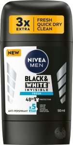 NIVEA DEZODORANT MEN STICK 50ML BLACK&WHITE INVISIBLE FRESH