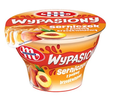 WYPASIONY SERNICZEK Z POLEWA BRZOSKWINIOWA KUBEK 150g - MLEKOVITA