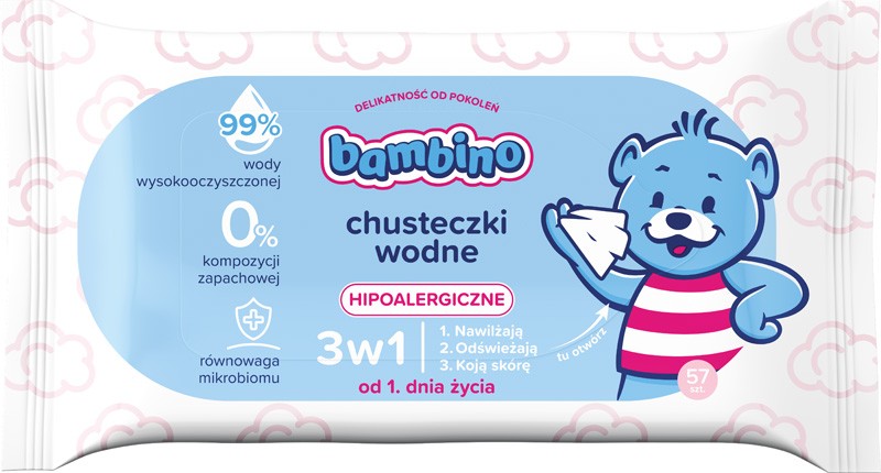BAMBINO Chusteczki wodne 3w1 hipoalergiczne 1 x 57 szt