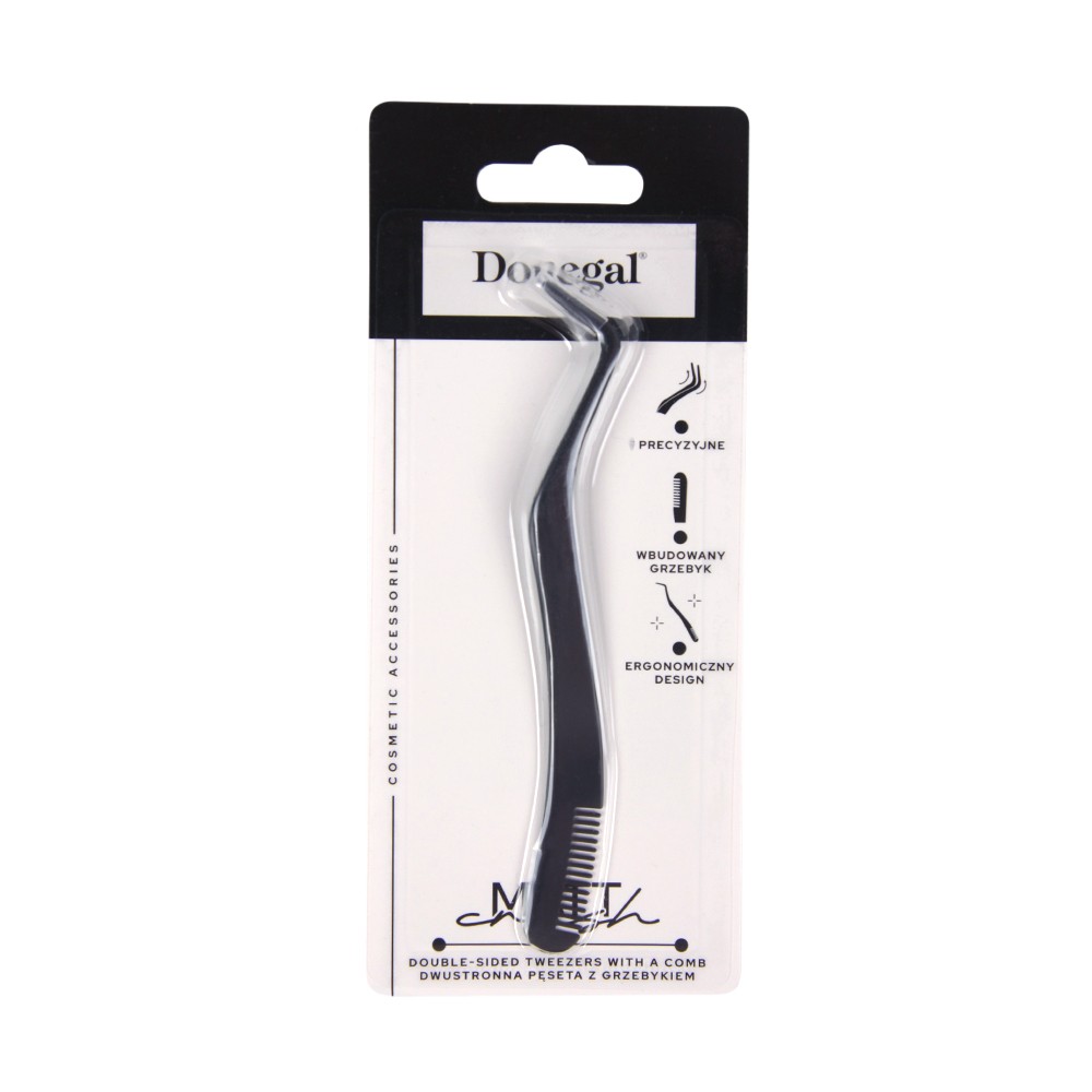 DONEGAL Mat Crush Peseta kosmetyczna dwustronna z grzebykiem - czarna matowa (4127)