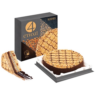 TORT „4 ELEMENTY” Z ORZESZKAMI, KAKAO I KREMEM Z MLEKA SKONDENS. 850g [mrozony] - ROSHEN